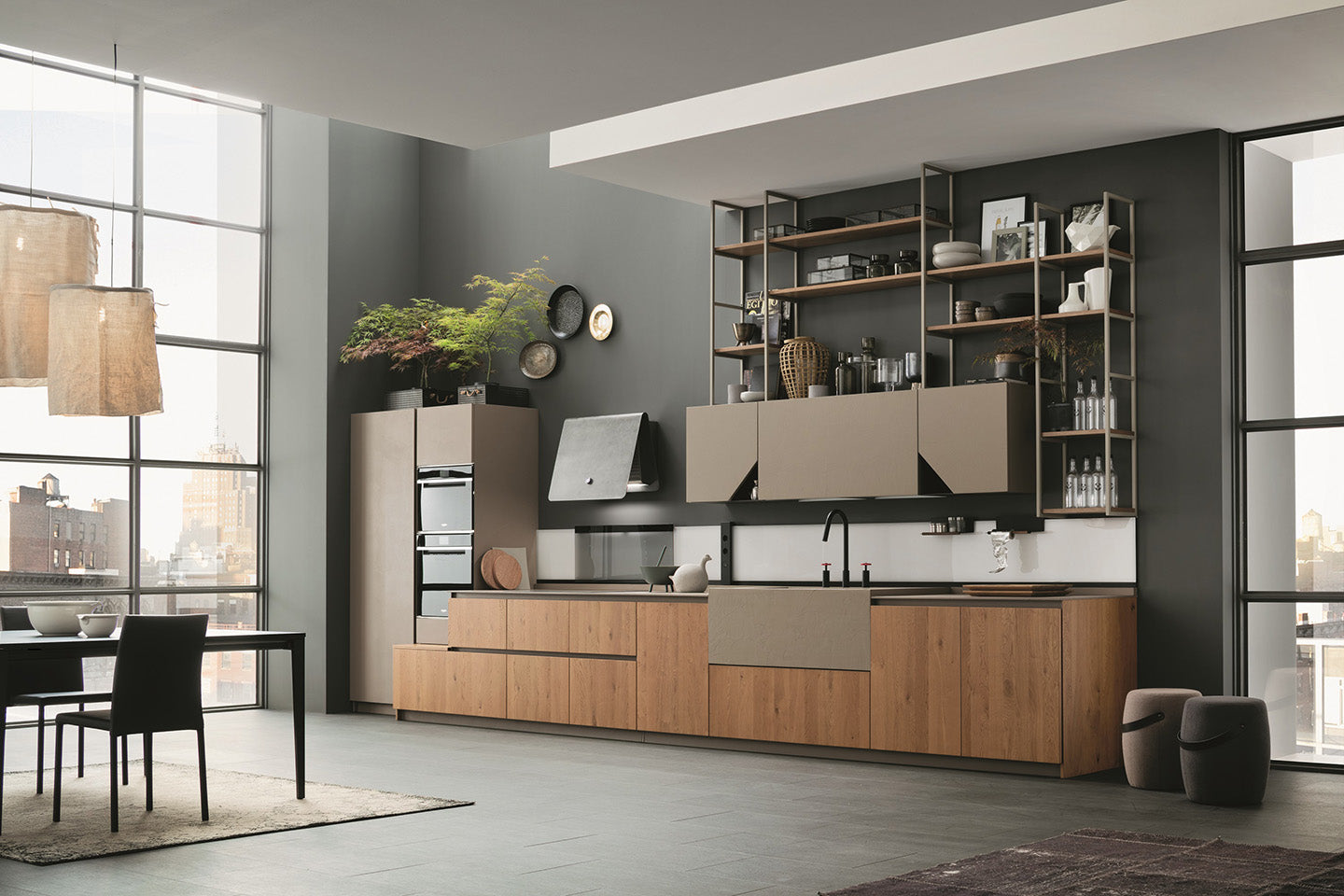 Questa cucina dall’animo moderno si distingue per la sua semplicità e il fascino delle sue finiture. Grazie alle linee pulite degli elementi in combinazione con i diversi colori e materiali, potrai creare un ambiente confortevole e di carattere.