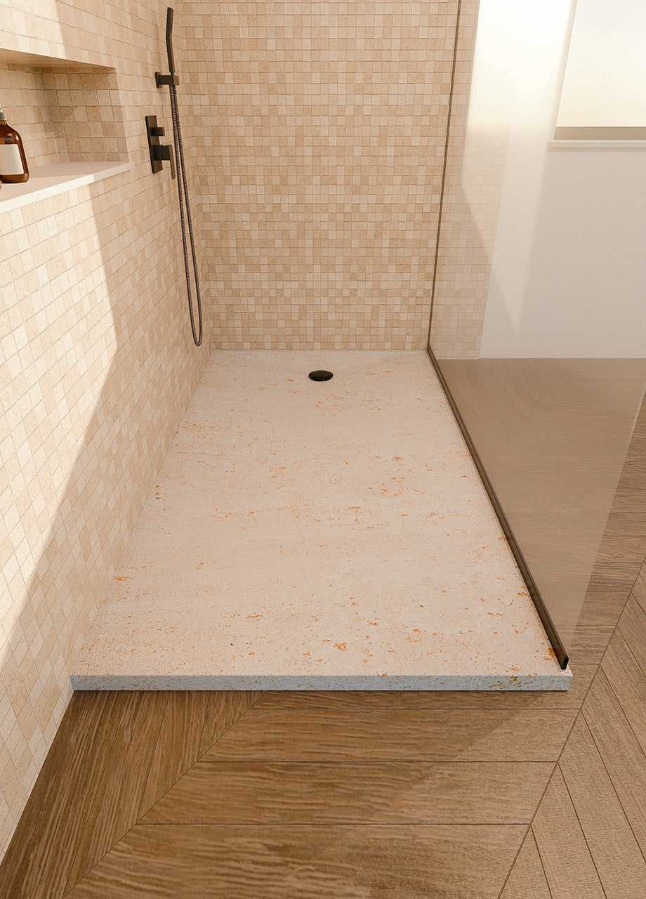 È possibile montare il piatto doccia a filo pavimento oppure in appoggio al pavimento stesso lasciando a vista il suo spessore.